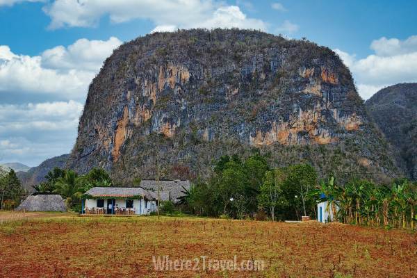Vinales es un pequeño pueblo ubicado en la región de Pinar del Río, a 3-4 horas en coche al oeste de La Habana. Es un bonito pueblo para visitar con sus casas pintadas de colores vivos, su calle principal llena de restaurantes y tiendas, así como su antigua plaza. Sin embargo, es la belleza natural del valle la que realmente se puede descubrir. Te aconsejo que te quedes allí al menos dos días para contemplar su hermosa naturaleza y sobre todo uno de sus principales atractivos: sus típicas montañas de piedra caliza llamadas mogotes.