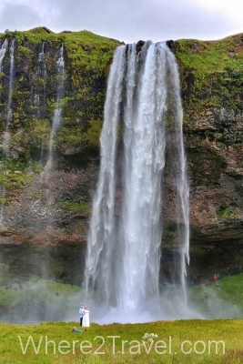 Wedding couple in front of Seljalandsfoss waterfall