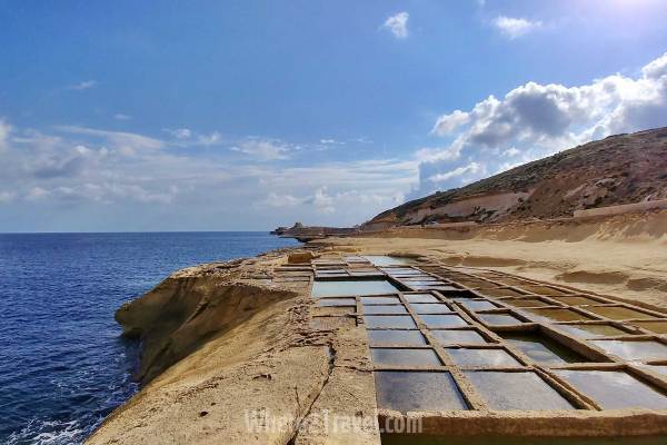 En el norte de Gozo, justo después de la bahía de Qbajjar y al oeste de Marsalforn, se pueden descubrir las salinas , talladas en la roca. Tienen unos 350 años y se extienden por unos 3 km a lo largo de la costa. Son parte de la tradición de Gozo de la producción de sal marina, que se ha transmitido de generación en generación. Una vez recogida, la sal se almacena y se procesa en las cuevas cercanas, que también son excavadas fuera de la roca.
