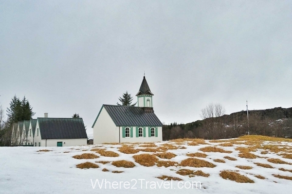 Þingvellir, the “parliamentary plain” in icelandic, is both a historic site and a beautiful national park with rivers, fissures in the Earth’s crust, waterfalls, a church from 1859 and the largest natural lake of Iceland. You can also see there the famous hemicycle “the Alþing“ (Classified on the World Heritage List by UNESCO) which was the place where the Icelandic clans’ chief used to gathered since the 10th century. It is also possible to dive in the Silfra fissure.