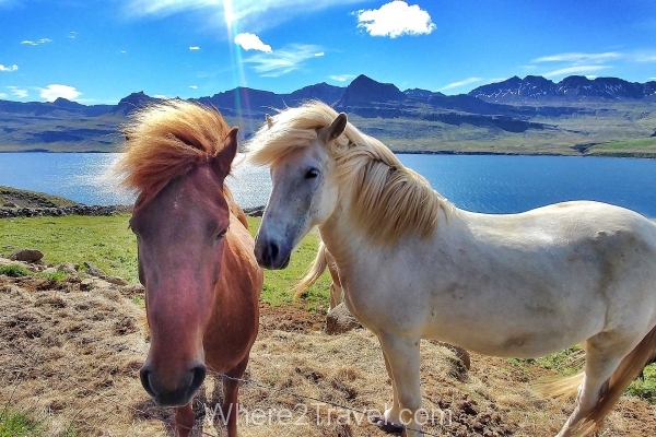 Beautiful horses at mjoifjordur in Iceland