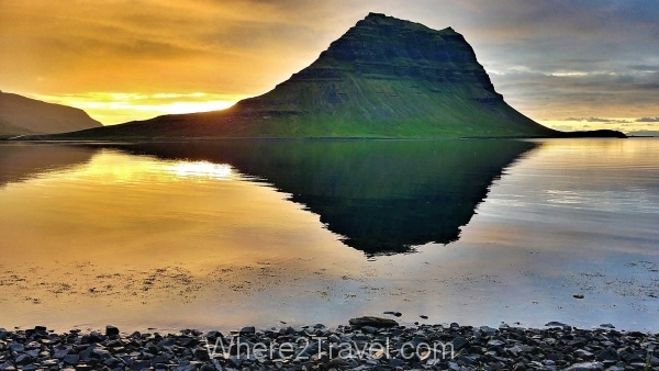 lake-reflection-sunset-kirkjufell-mountain-iceland