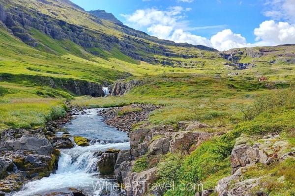 Aussi connu sous le nom de « fjord étroit », Mjóifjörður est un fjord de 18 kilomètres de long situé dans l’est de l’Islande entre Norðfjörður et Seyðisfjörður. Bien qu’assez isolé, il est populaire auprès des touristes et des habitants de la région. En été, si vous avez votre propre voiture, n’hésitez pas à prendre la très belle route le long du fjord qui mène au phare du Dalatangi (position exacte : 65.270255, -13.575244). Vous arriverez dans une zone très paisible, avec des chutes d’eau, des moutons et des chevaux islandais sur le chemin.