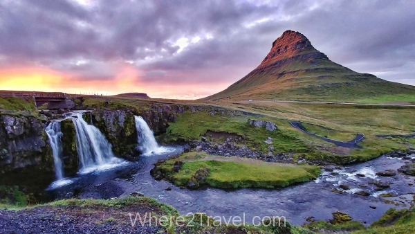 waterfall-sunset-kirkjufell-mountain-iceland