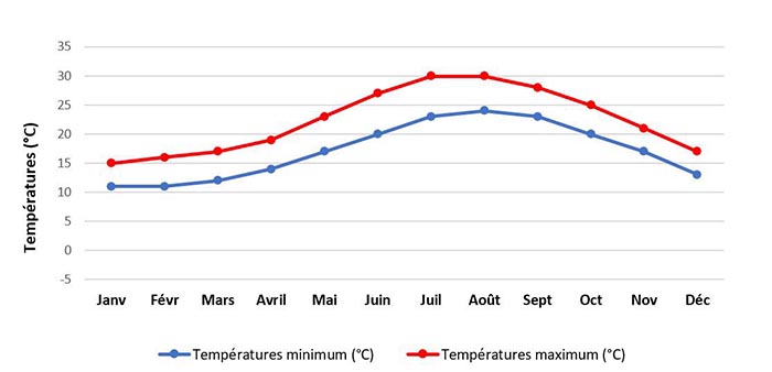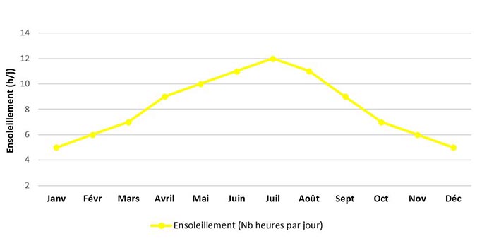 Température, heures d’ensoleillement et précipitations au cours de l’année